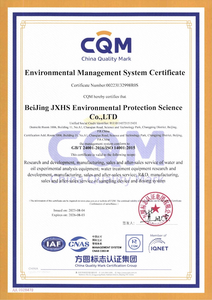 環(huán)境管理體系認(rèn)證證書